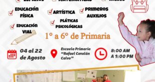 El Gobierno Municipal de Eduardo Neri, que preside la Q.B.P. Sara Salinas Bravo, a través de la Dirección de Apoyo a Instituciones Educativas, invitan: Cursos de Verano 2025 de “Regularización” Español y Matemáticas Ingles Educación Física y Artística Educación Vial Primeros Auxilios Pláticas Psicológicas De 1ero a 6to de …
