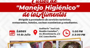 El Gobierno Municipal de Eduardo Neri, que preside la Q.B.P. Sara Salinas Bravo, a través de la Dirección de Desarrollo Turístico y en coordinación con la Secretaría de Turismo del Estado de Guerrero, invitan: Curso de Manejo Higiénico de Alimentos Lunes 14 de Julio 1:00 pm a 3:00 pm Dirigido …