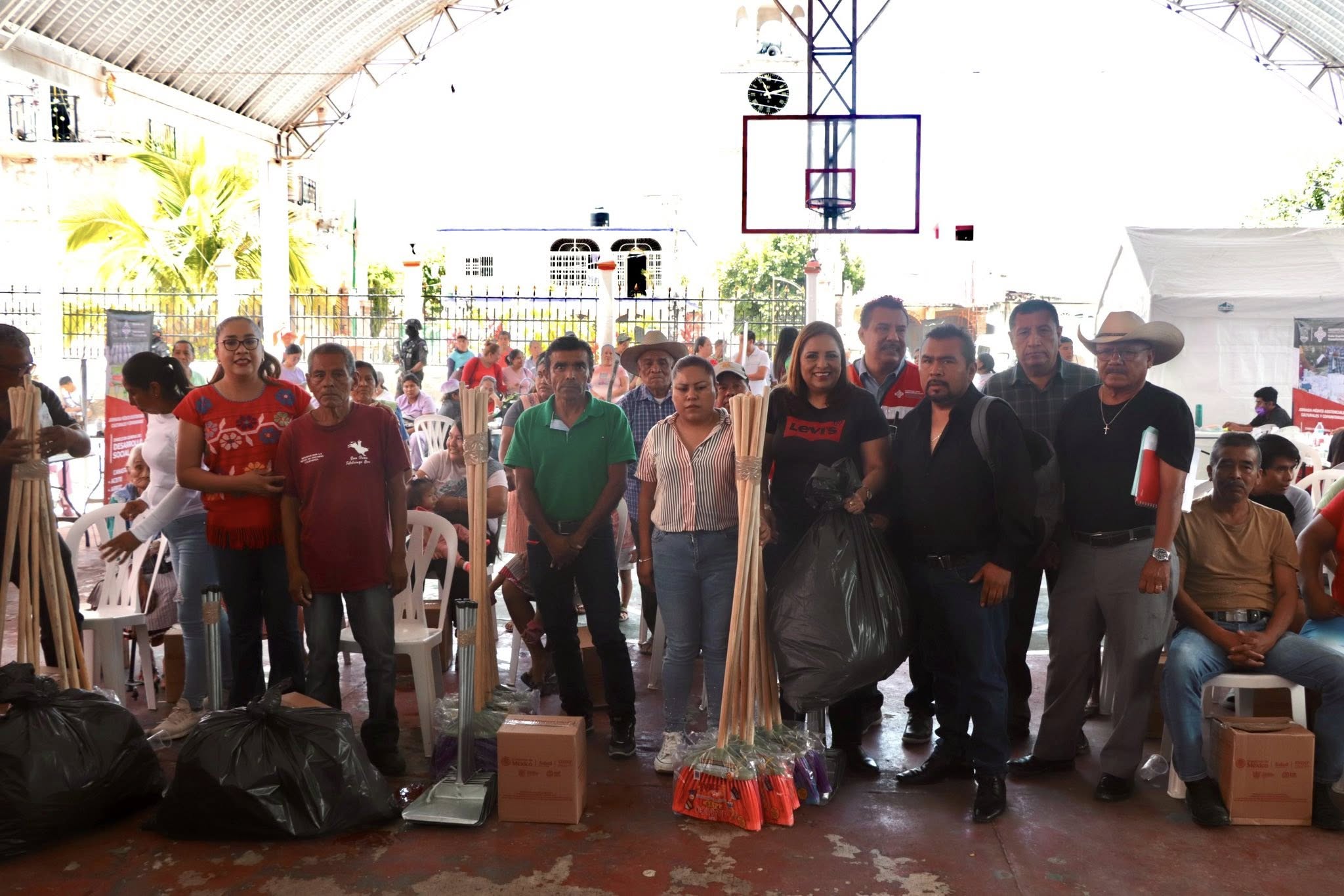 Durante el evento se hizo entrega de aparatos funcionales gestionados a través del DIF Municipal, así como también de material para los comités de limpieza de la localidad.
