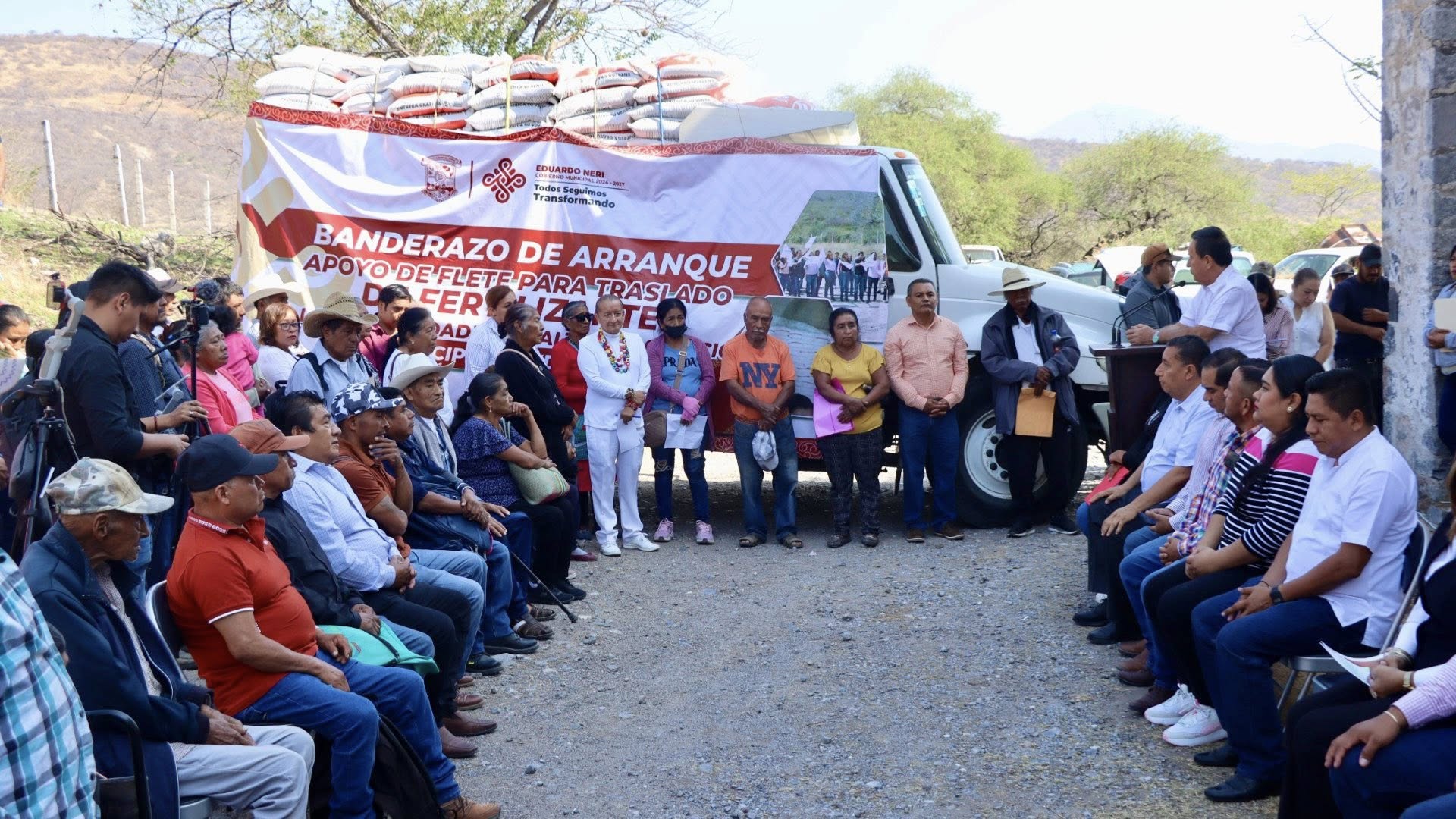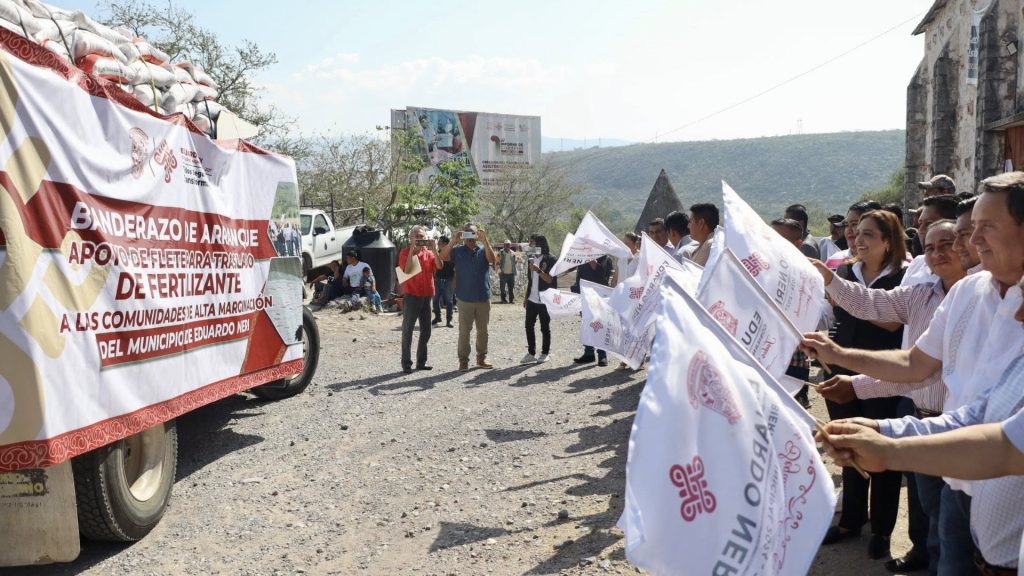 Eduardo Neri, Gro., 25 de marzo de 2026. Para fortalecer el campo y el bienestar de las y los productores de Eduardo Neri, hoy la presidenta municipal, Sara Salinas Bravo, junto a integrantes de la comuna, el director de Desarrollo Rural, Lic. Alejandro Sandoval Donjuan, y autoridades locales, dieron el banderazo inicial para la entrega gratuita de fertilizante para el Bienestar 2026.