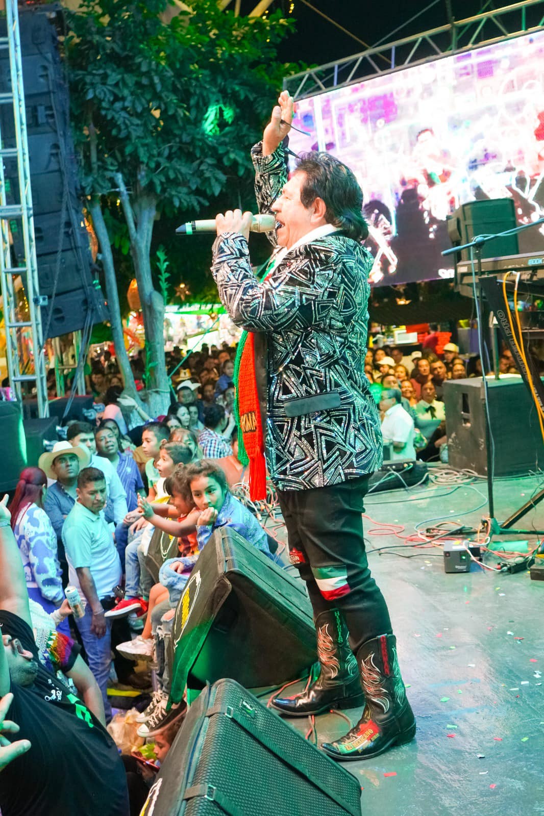 El teatro del pueblo fue el lugar donde cientos de familias se dieron cita al finalizar el tradicional recorrido para disfrutar y bailar al ritmo de todos los éxitos de «Mi Banda El Mexicano».