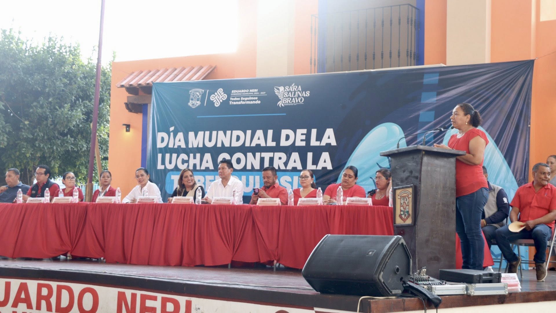 Zumpango del Río, Gro., 24 de marzo de 2026. La tarde de hoy, la presidenta municipal de Eduardo Neri, Q.B.P. Sara Salinas Bravo, encabezó el acto conmemorativo alusivo al Día Mundial de la Lucha contra la Tuberculosis, que organizó el Gobierno Municipal a través de la Dirección General de Salud y en coordinación con la Secretaría de Salud Guerrero, donde se desarrolló una actividad a cargo de la Dra. Arleth Yamili Pavón Gallardo, responsable del Programa de Micobacteriosis, para promover la prevención y atención de este padecimiento en el municipio.