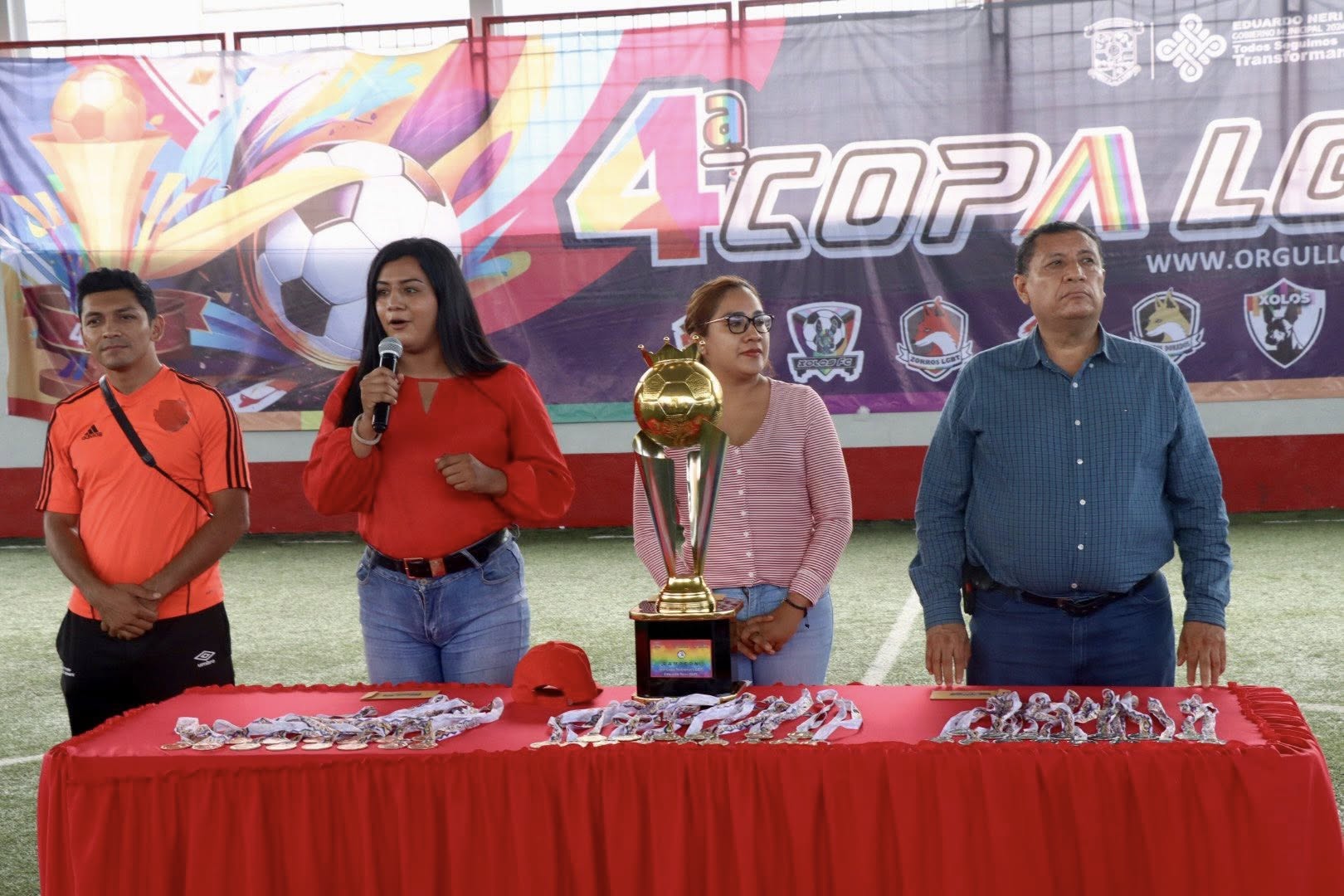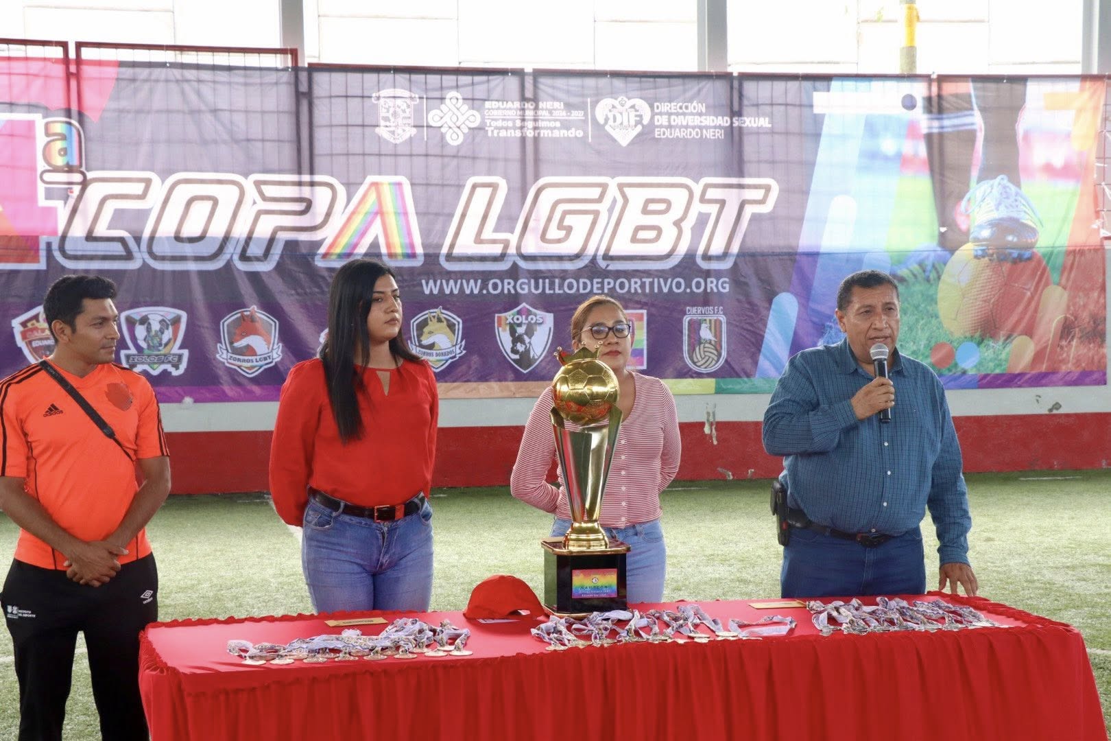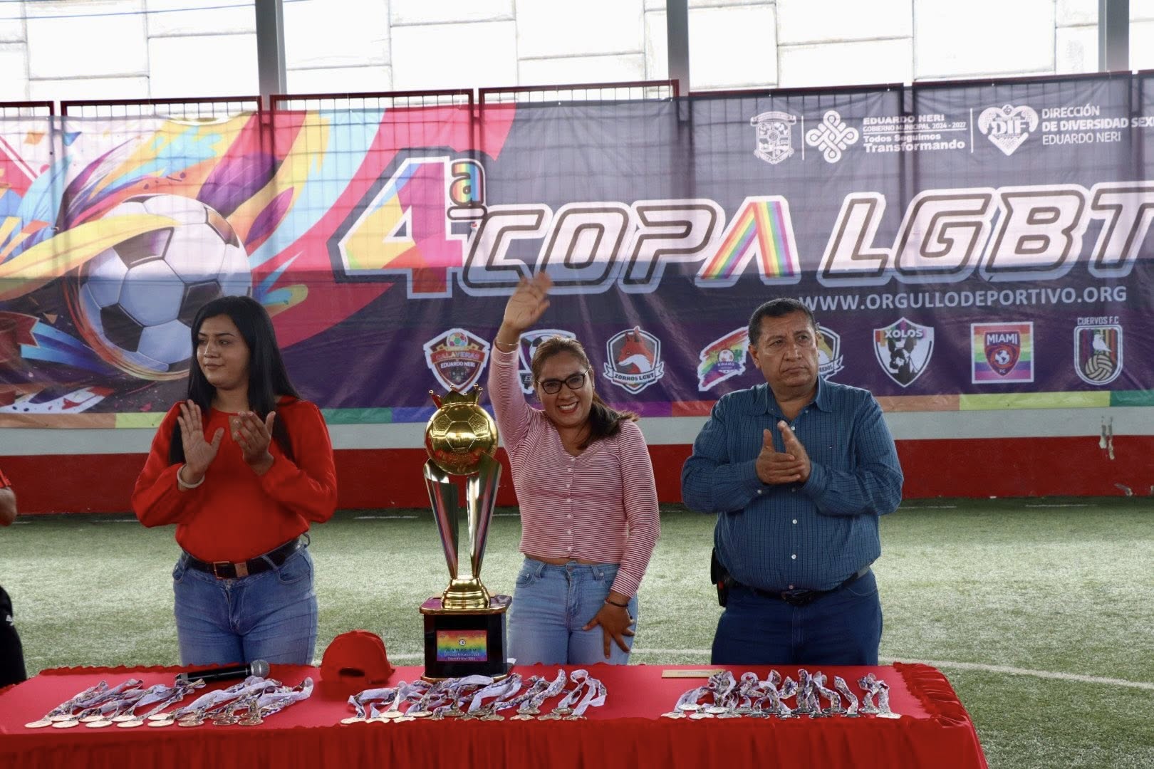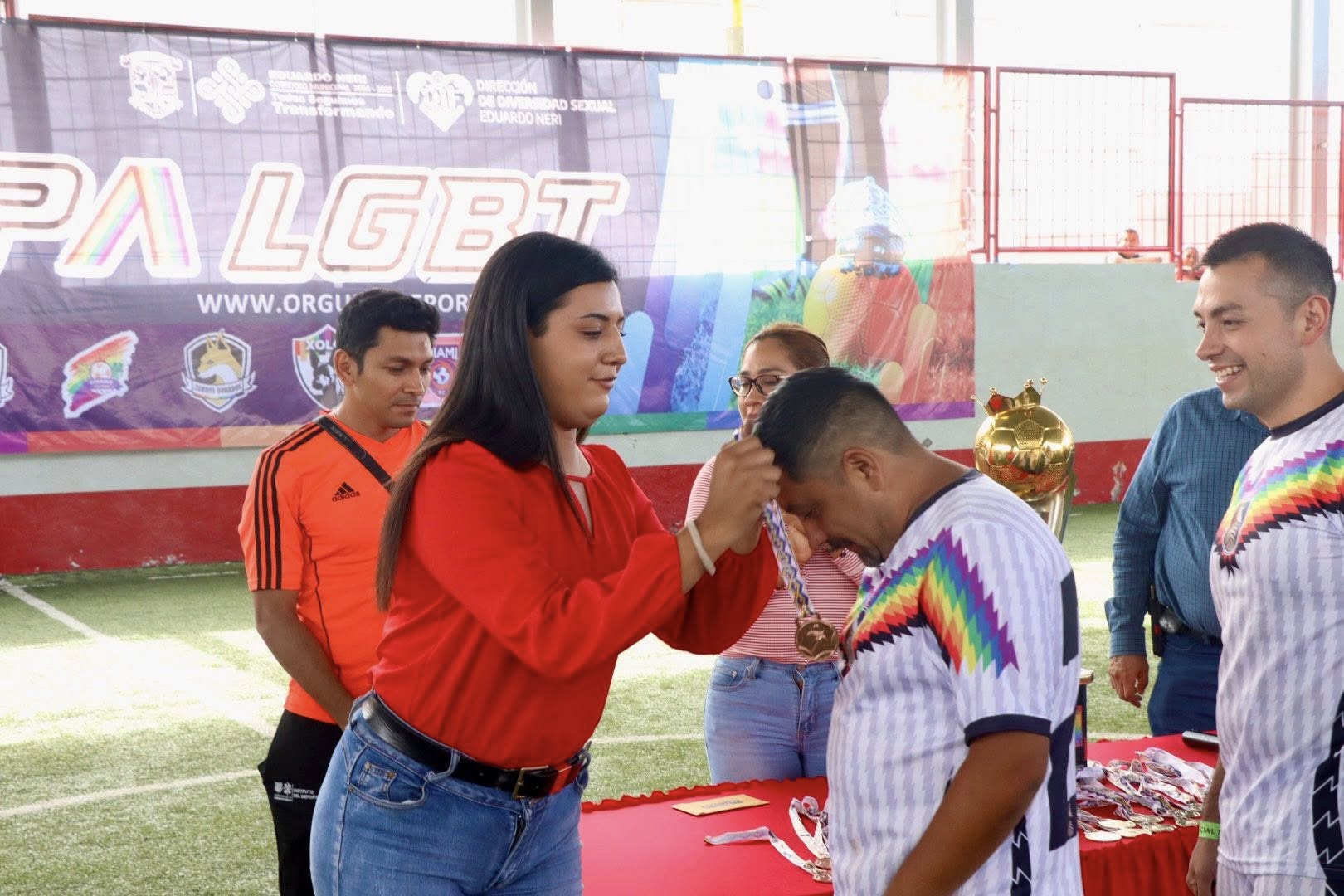 La Directora de Diversidad Sexual, reconoció el esfuerzo y la entrega deportiva de los ocho equipos que participaron en este torneo que por cuarta ocasión organizó el municipio de Eduardo Neri en coordinación con el Presidente Nacional de la Copa Orgullo Deportivo, quien en su intervención, extendió un agradecimiento a la presidenta municipal e integrantes de su gobierno por hacer posible la realización de este evento que dijo, se ha convertido en un referente a nivel nacional al promover un espacio sano, seguro y sin discriminación para quienes son parte de la diversidad.