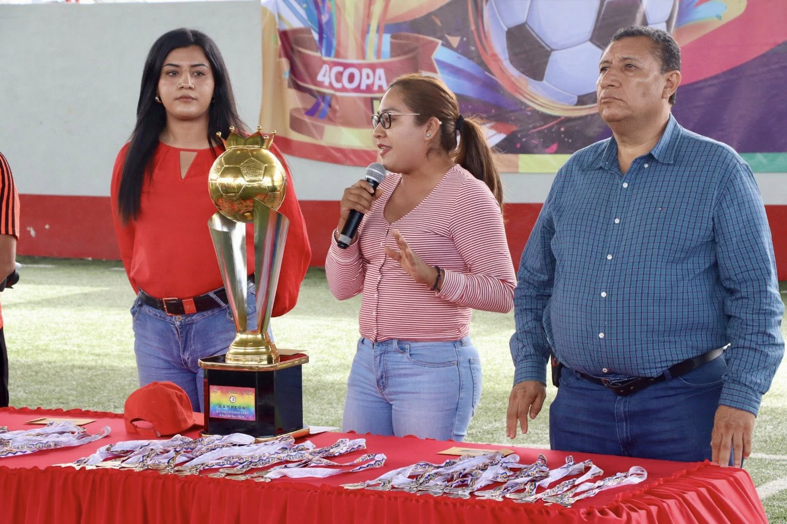 Quienes recibieron una medalla y un premio en efectivo de $6,000, $4,000 y $3,000, respectivamente, así como un trofeo los campeones, de manos de los representantes municipales.