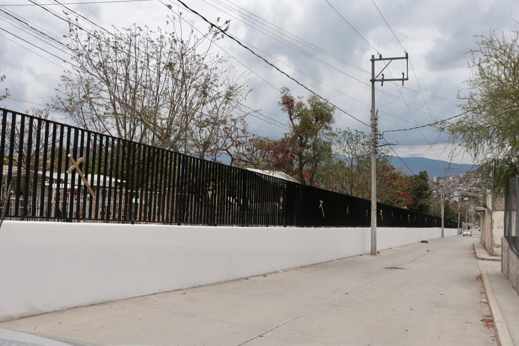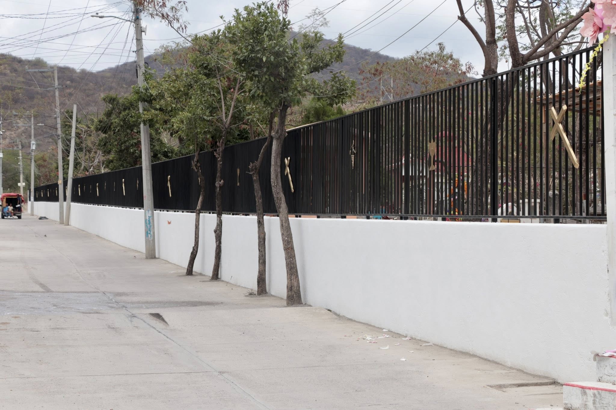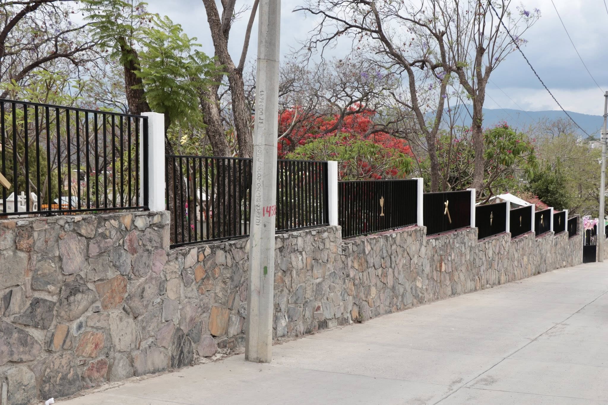 Entregando la Obra denominada “Rehabilitación del Panteón Municipal de Zumpango del Río”, donde se trabajaron 783.70 metros lineales de rehabilitación del cercado perimetral del panteón municipal, que constó en retirar la malla en mal estado, aumentar los muros de mampostería, aplanados y boquillas de los muros, fabricación y la colocación de 356 metros lineales de barandal nuevo. Así como la pintura de todo el perímetro del panteón.