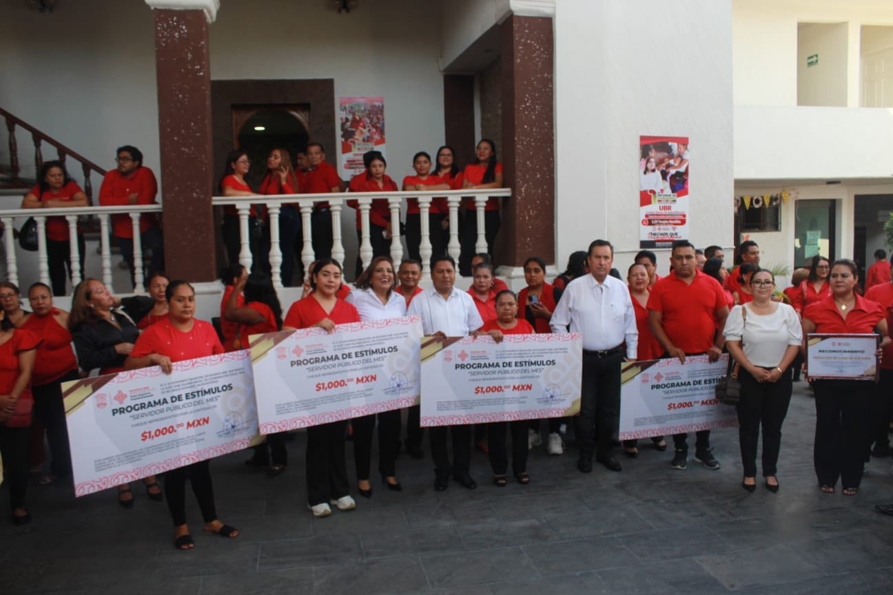 Asimismo, durante el evento, el Prof. Francisco Javier Leyva Navarrete, director de Recursos Humanos, hizo mención de las y los compañeros reconocidos como “Servidor Público del Mes” por su destacado desempeño durante marzo: Gerardo Catalán Córdoba, Lorena Santiago Beatriz, Natividad Fuentes Bravo y Daniela González Barquera, así como la Dirección de la Casa de Cultura, a quienes la presidenta felicitó en su mensaje. Agradeciendo a su vez la colaboración de la Escuela Telesecundaria “José Francisco Ruiz Massieu” y de las autoridades educativas que se dieron cita en este homenaje que fomenta el amor y el respeto por nuestros símbolos patrios.