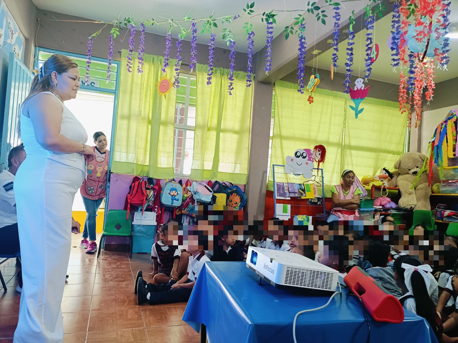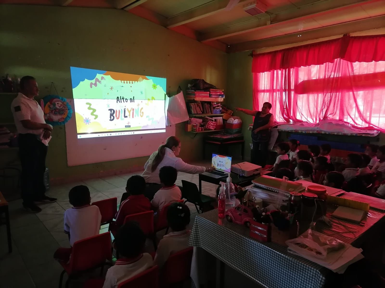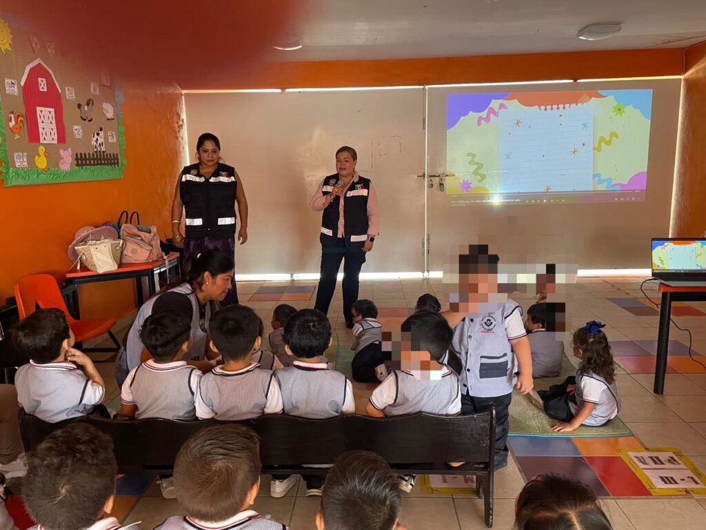 Siendo impartido este importante taller al alumnado del Jardín de Niños “Gabriela Mistral”, “Agustín Melgar”, Cendi “Benito Juárez”, Centro de Atención Infantil “Laura del Rocío Herrera de Aguirre”, y la Primaria “Miguel Hidalgo y Costilla”, con la participación del personal de la Dirección de Prevención Social del Delito, junto a su titular, Psic. Sandra Bustos Ruiz.