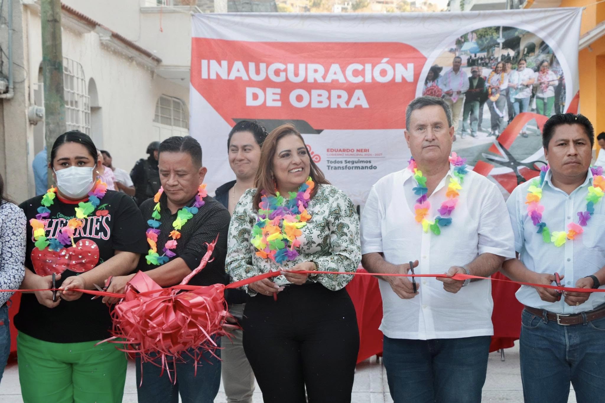 Zumpango del Río, Gro., 25 de marzo de 2025. Manteniendo el firme propósito de fortalecer la imagen urbana y una movilidad segura en el municipio de Eduardo Neri, este día la presidenta municipal, Sara Salinas Bravo, inauguró la obra de pavimentación con concreto hidráulico de la calle Valerio Trujano en Zumpango del Río, del tramo ubicado entre calles Chabacano y Guillermo Soberón Acevedo, realizada con recursos del Fondo de Aportaciones para la Infraestructura Social Municipal(FAISMUN 2025).
