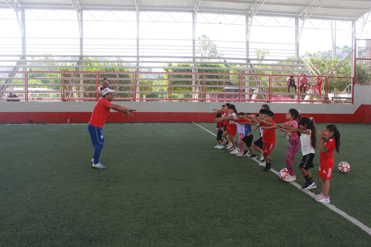 Zumpango del Río, Gro., 16 de julio de 2025. Reafirmando su compromiso con el desarrollo y el bienestar de la niñez, el Gobierno Municipal de Eduardo Neri, que preside la Q.B.P. Sara Salinas Bravo, a través de la Dirección del Deporte, dio inicio a los entrenamientos que ofrece la Escuela Municipal de Fútbol Infantil a niñas y niños de 5 a 11 años en la Categoría Infantil Mixta.