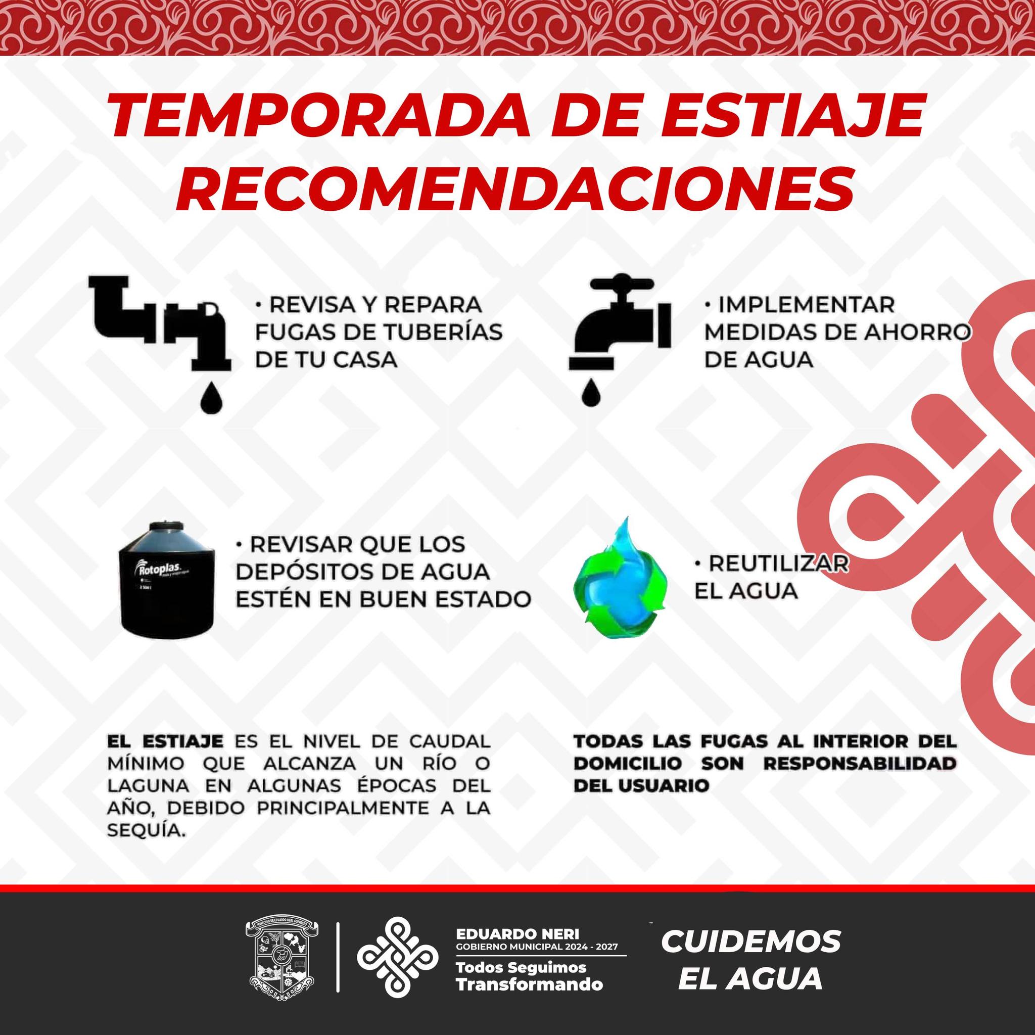 Recuerda que entramos en la temporada de ESTIAJE. ¡Cuidemos el AGUA! #TodosSeguimosTransformando