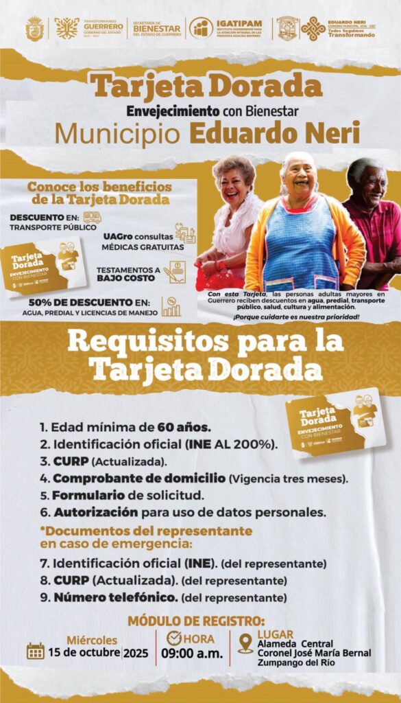 ¡Regístrate este 15 de octubre para ser beneficiario de la Tarjeta Dorada!