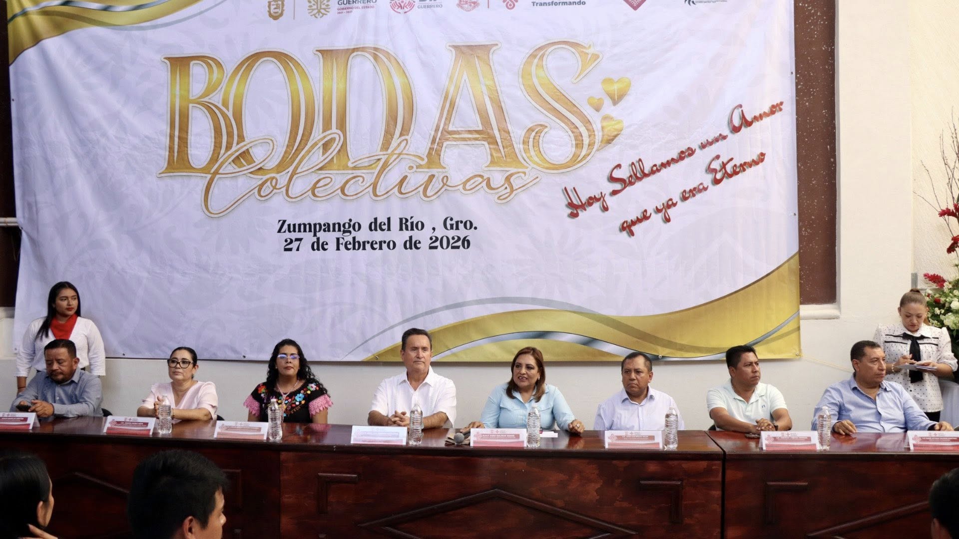 Zumpango del Río, Gro., 27 de febrero de 2026. Esta mañana 27 parejas del municipio de Eduardo Neri contrajeron matrimonio civil en las Bodas Colectivas 2026, organizadas de manera gratuita en el marco del Día del Amor y la Amistad por el Gobierno que preside la Q.B.P. Sara Salinas Bravo, a través del DIF Municipal y en coordinación con la Oficialía del Registro Civil No 1 de Zumpango del Río.