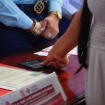 Haciéndose entrega al final de un pequeño obsequio a los recién casados como parte de este inolvidable momento.