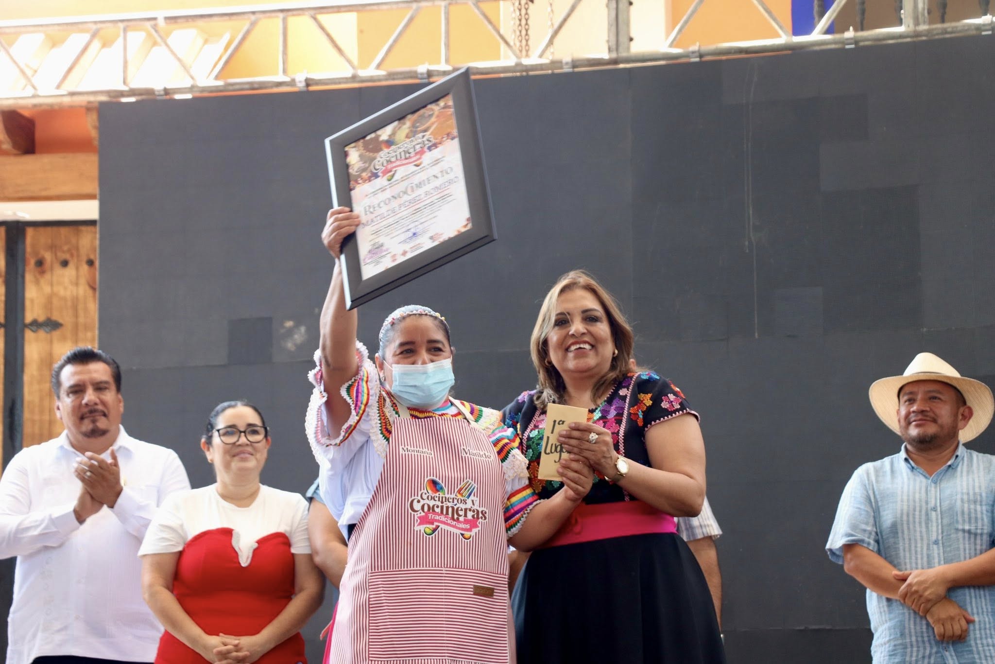 A su vez, la Mtra. Luz del Carmen Gómez, Delegada del Estado de Guerrero del Conservatorio de la Cultura Gastronómica Mexicana, en nombre de su institución hizo entrega de un reconocimiento a la presidenta Sara Salinas Bravo por su invaluable compromiso y gestión para impulsar dicho encuentro que rindió homenaje a las recetas que definen la identidad cultural de Guerrero, así como a la cocinera tradicional Antonia Reyes Trinidad, por su colaboración en la organización del evento y su contribución al legado gastronómico del estado.