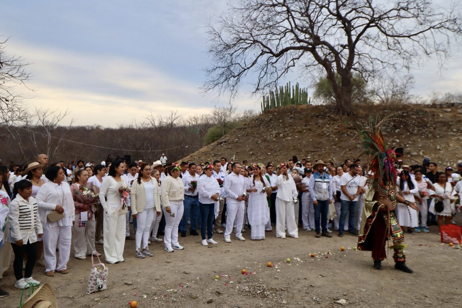 Xochipala, Gro., 21 de marzo de 2026. La mañana de hoy se llevó a cabo una ceremonia ancestral para dar la bienvenida a la primavera en la zona arqueológica La Organera de la localidad de Xochipala en el municipio de Eduardo Neri.