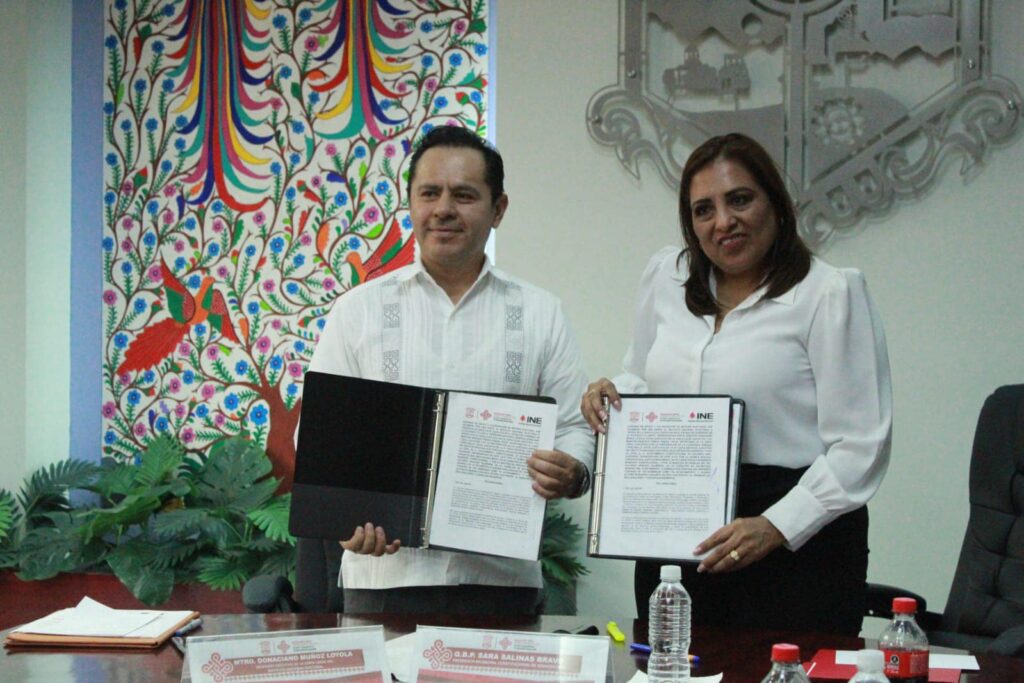 La presidenta Sara Salinas Bravo, agradeció al Delegado Ejecutivo, Mtro. Donaciano Muñoz Loyola, la firma de este importante convenio de colaboración con el municipio, mencionando que esta será una elección histórica en la cual las y los ciudadanos podrán votar por primera vez para elegir a representantes del Poder Judicial de la Federación, lo que marca un precedente y fortalece la vida democrática de nuestro estado y nuestro país.
