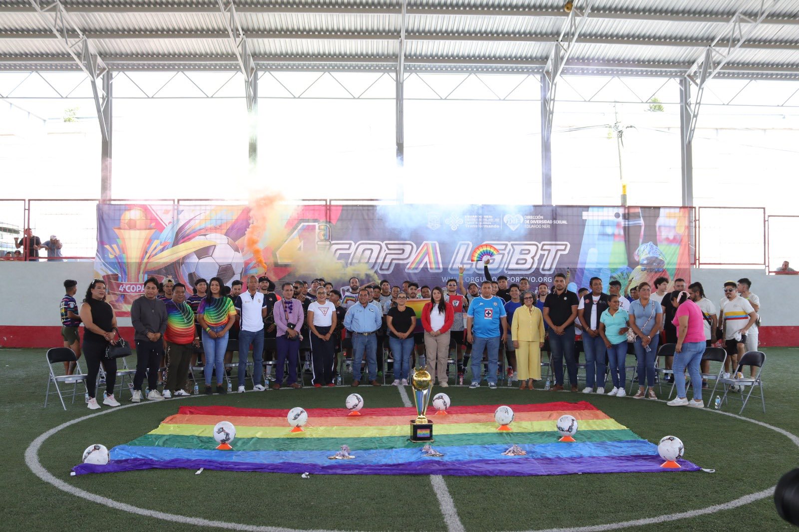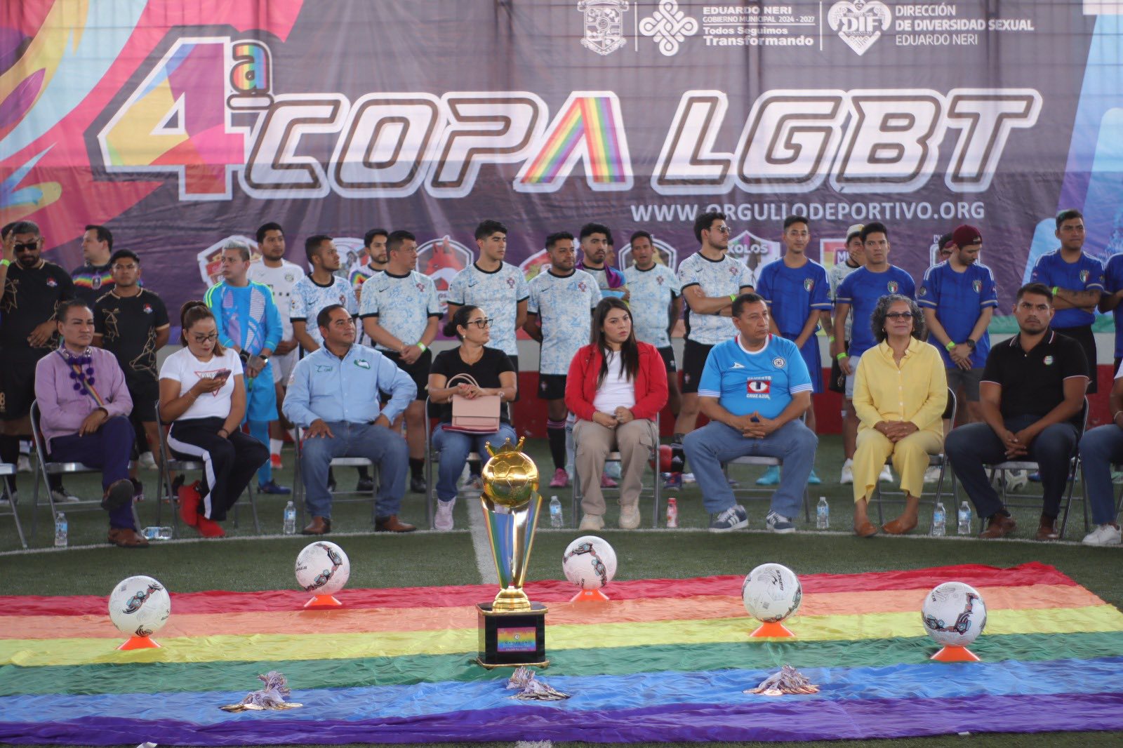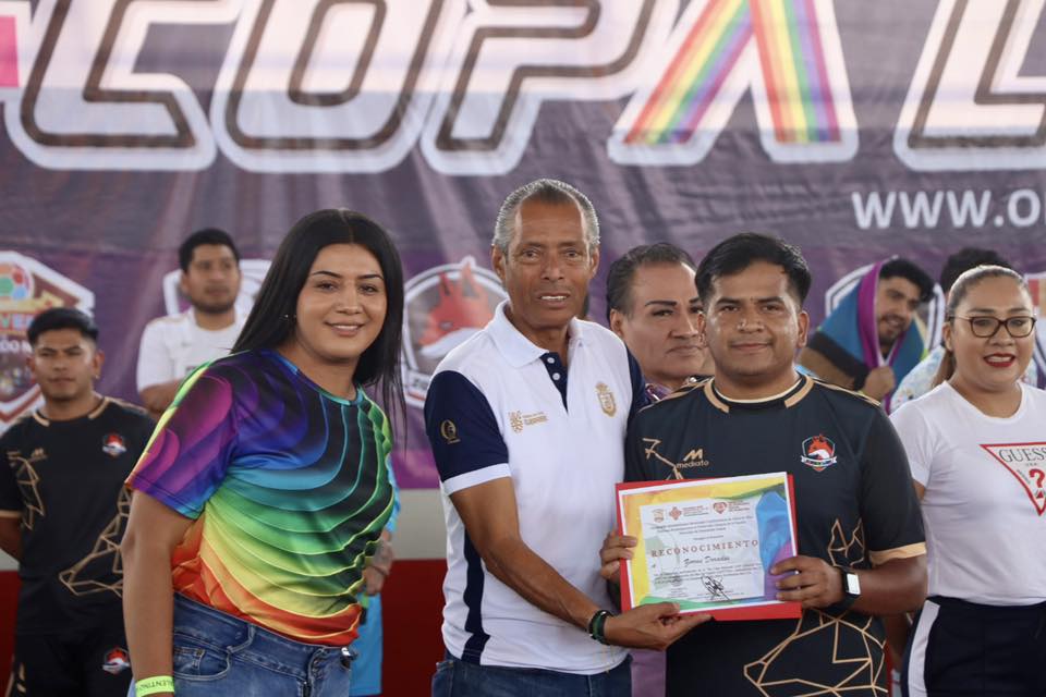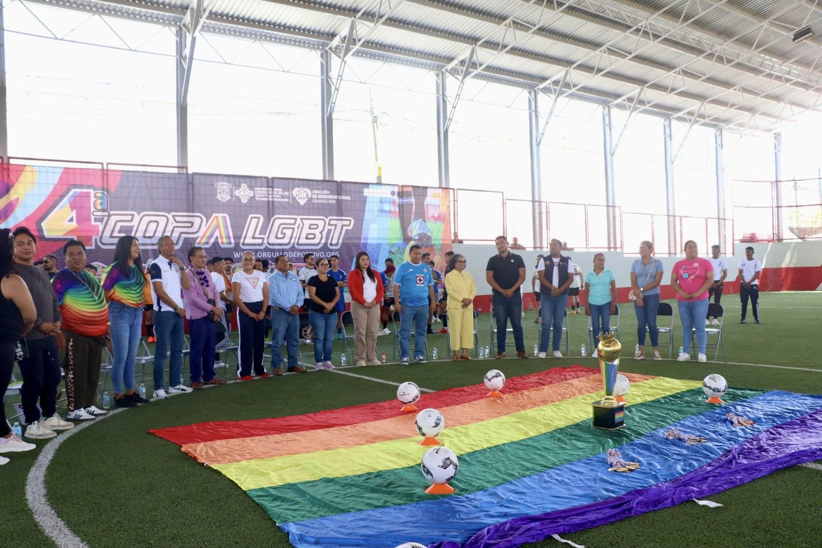 Zumpango del Río.,Gro., 7 de junio de 2025. El Gobierno Municipal de Eduardo Neri, que preside la Q.B.P. Sara Salinas Bravo, a través del Sistema DIF Municipal y la Dirección de Diversidad Sexual, y en coordinación con la firma Orgullo Deportivo, inauguraron este día la 4ta Copa Nacional LGBT 2025 que se estará celebrando en Zumpango del Río, con el propósito de visibilizar a la población LGBT y conmemorar el Mes del Orgullo fomentando la práctica del deporte y la cultura de inclusión y respeto hacia quienes forman parte de esta comunidad.