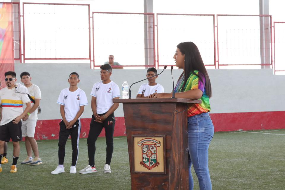 La Lic. Sarita Parra Nava, dio la bienvenida en nombre de la alcaldesa a todos los equipos participantes, reiterando el interés primordial que guarda la presente administración con la inclusión y el bienestar de todos los sectores sociales, entre ellos la comunidad LGBT; quien deseó mucho éxito a los equipos e invitó a disfrutar de esta fiesta deportiva que se celebra para conmemorar el Mes del Orgullo.