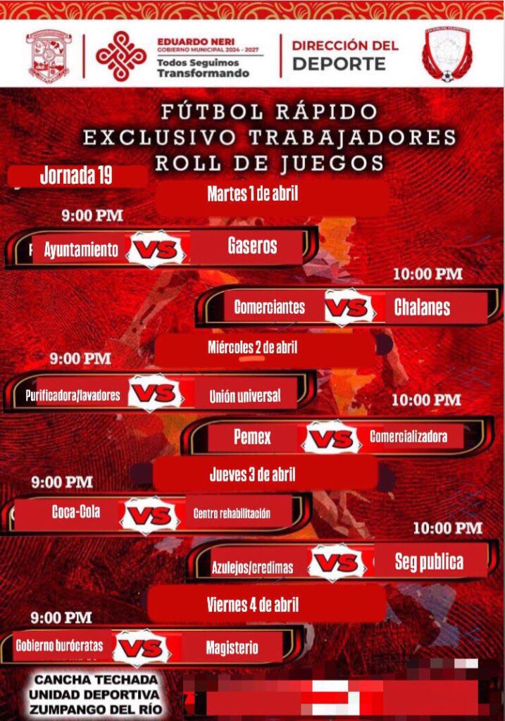 El Gobierno Municipal de Eduardo Neri, que preside la Q.B.P. Sara Salinas Bravo, a través de la Dirección del Deporte, informan: