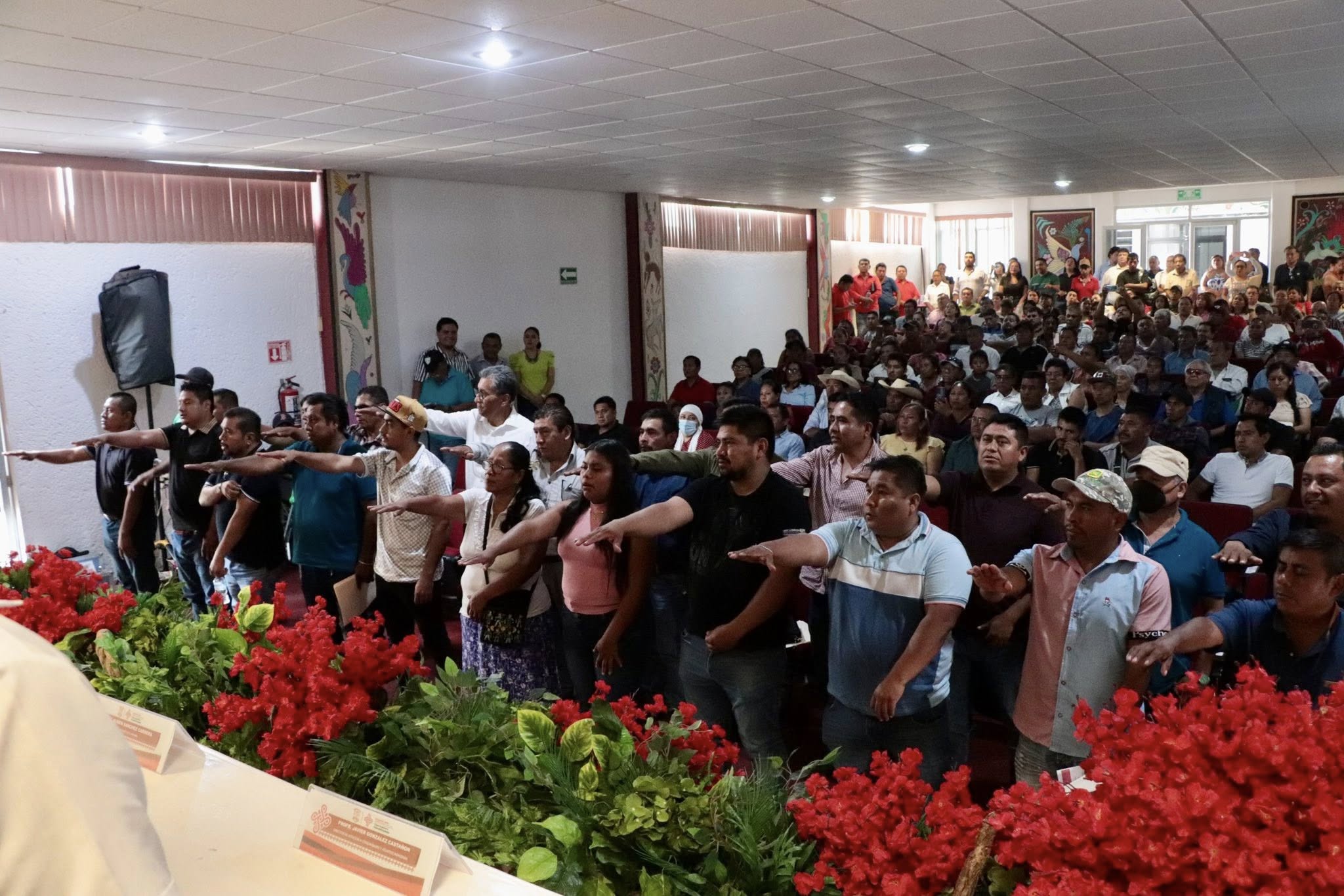 En su intervención, el Secretario General felicitó a las y los recién nombrados, quienes fueron elegidos por los propios habitantes mediante asambleas que se realizaron de manera legal y transparente. Reiterándoles el apoyo del gobierno municipal y de la presidenta, Sara Salinas Bravo, para seguir trabajando de la mano junto a ellos en beneficio de sus comunidades.