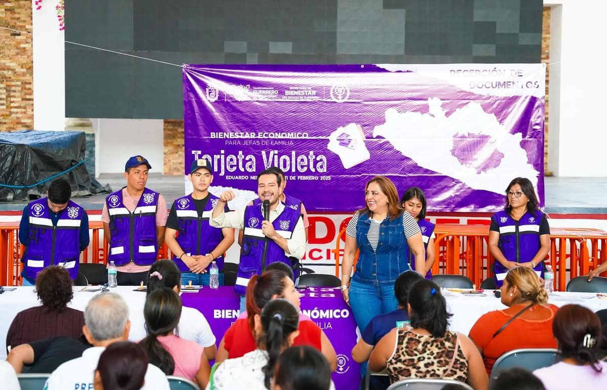 Este día visité el módulo de registro del programa #TarjetaVioleta, que impulsa el gobierno del estado, instalado en la alameda central de la cabecera municipal. Donde aproveché para saludar al titular de la Secretaría del Bienestar Guerrero, Dr. Pablo Gordillo Oliveros, quien estuvo presente durante el registro, así como a los Guerreros del Bienestar que están atendiendo a nuestras jefas de familia, y a las mismas.